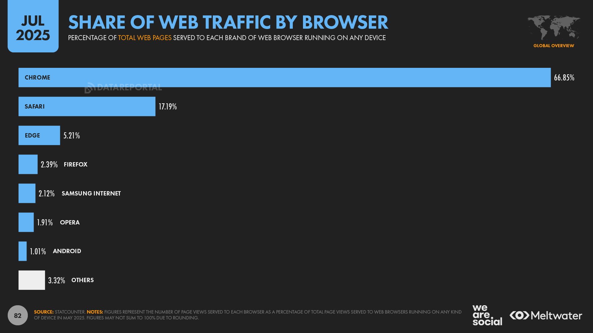 More specifically, Chrome captured 66.85 percent of web pages served to browsers worldwide in May 2025, which equates to more than two-third of total global web traffic.