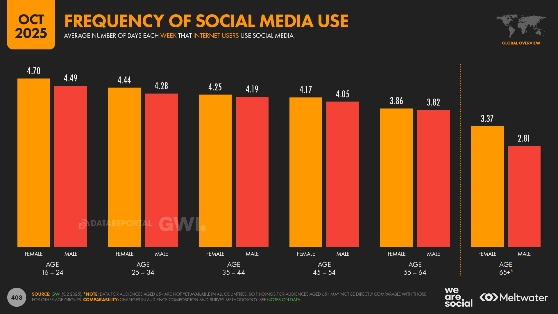 It’s also worth highlighting that platform use varies meaningfully by age, with internet users aged 16 to 24 using more than twice as many platforms as online retirees.