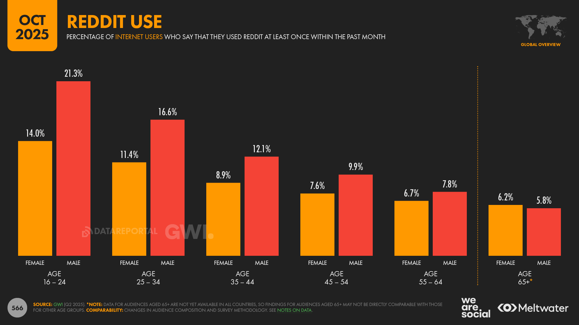 Conversely, the biggest numbers in Reddit’s audience profile align with male users aged 16 to 34, suggesting that the community platform may be a compelling choice for brands hoping to reach and engage younger men.
