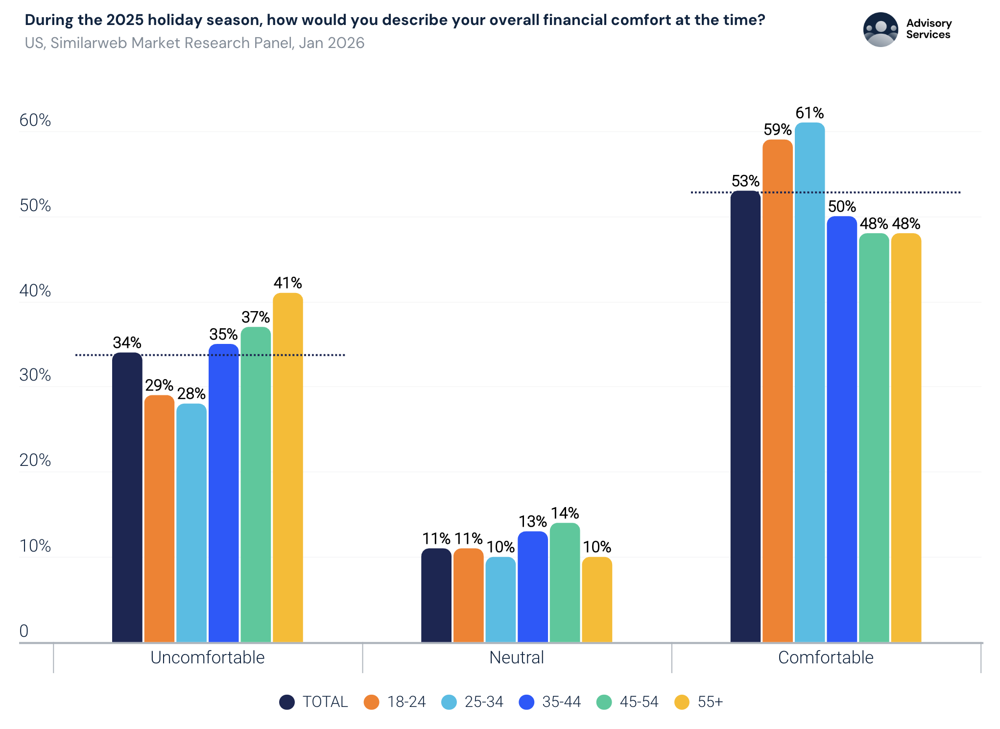 Similarweb’s Market Research Panel data from January 2026 indicates that – overall – US consumers expect their financial situation to be better in Holiday 2026 than it was in Holiday 2025.